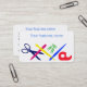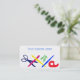 Una tarjeta de visita moderna, sencilla y divertida, con un fondo blanco y esquinas redondeadas, decorada con una hilera de objetos de escritorio de colores vivos: tijeras, pluma, pincel para artistas, clips de papel y soporte para selografía. Es adecuado para un artesano, profesor, artista, pintor o diseñador. La parte posterior de la tarjeta es totalmente personalizable con tu nombre y detalles.
