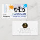 Una cubierta blanca con una bandeja de pintura que tiene un motivo útil que puede usar. Justo debajo está el nombre comercial "HANDYMAN" y los datos de contacto. A la izquierda está tu prestigioso nombre y una opción de subtítulo de eslogan que se lleva a cabo verticalmente. ; Cambie los comentarios del pie de foto a este para que se adapte a sus propias necesidades de servicio. Al dorso, en la parte superior hay un logotipo de las herramientas manuales de oro que se pueden usar. A esto le sigue su prestigioso nombre, detalles de contacto y una opción de slogan para publicitar sus servicios. Una gran carta para los hombres a mano y los negocios de construcción. Constuctionhandyman, handyman, handyman.
