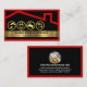 Una cubierta negra está encapsulada por un marco de borde de techo rojo. Aquí se encuentra un conjunto de herramientas manuales de oro con una capa rayada de oro cerca de la base. Esta capa contiene el nombre comercial "HOME REPAIR SERVICE" que puede cambiar junto con los detalles de contacto. Las herramientas de oro pueden representar algunos de los servicios que puede ofrecer, por ejemplo, la cinta de medida de taladros puede representar remodelación del hogar, trabajos de mano, etc. Al dorso, se utiliza un diseño similar de marco rojo. En la parte superior hay un logotipo dorado para sierras electromagnéticas que se puede usar en la parte superior. A esto le sigue su prestigioso nombre y los datos de contacto. Una gran tarjeta para los empleados y los contratistas de construcción. #handyman #construccion #homeconstruccion #edificios #homerepair #contratista de construcción #general contratista #constructor #remodeling #handymantools