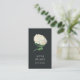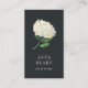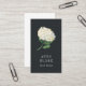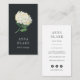 Elegantes tarjetas verticales de negocios para floristas, diseñadores florales, planificadores de bodas u otros profesionales bodas cuentan con un ilustracion de floración hidrangea acuarela en verde y blanco, con su nombre o nombre de negocio debajo, sobre un rico y llamativo fondo negro suave. Añade tus datos de contacto completos al reverso al contrastar el blanco y negro blando. Incluye tres íconos de medios sociales y un campo de plantilla para tu cuenta de medios sociales.