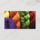 Tarjetas de visita de la diversión para los calceteros, los crocheters, o los artistas de la fibra. La imagen encendido detrás tiene varias madejas del hilado en diversos colores. Todos los campos del texto son adaptables así que usted puede añadir el Info relevante para su pequeña empresa.