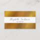 Eleva tu marca con este diseño de tarjetas de visita de lujo dorado. Con un rico patrón de hojas de oro texturizado, emparejado con una franja blanca limpia, esta tarjeta le permite personalizar su nombre y título profesional con estilo y sofisticación. La parte posterior continúa con el elegante tema con acentos dorados y un fondo blanco para su información de contacto. Perfecto para creativos, marcas de lujo, planificadores de eventos y profesionales que buscan un look elegante y atemporal.