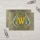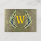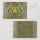 Diseño de monograma, de corona abierta, con dos tallos dorados, de hojas, en oro, oliva, bronce y negro sobre un fondo de color marrón, bronce y negro, moteado, texturado y con un fondo de color.
