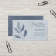 Esta hermosa tarjeta de visita presenta un bonito diseño con hojas de color azul pizarra pintadas a mano sobre un fondo azul polvoriento de mármol. Su nombre o negocio está escrito en elegantes letras modernas con espacio para una línea de etiqueta o título e información de contacto.