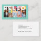 El diseño moderno y moderno de las tarjetas de visita, con un diseño de cinco fotos. "Hola" es una tipografía diseñada y colocada sobre cada foto. El fondo es verde azulado. En el reverso se muestra la información de contacto diseñada en un diseño limpio y mínimo.