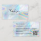 "Trato y chismoso fondo holográfico gracias tarjeta de visita para propietarios de pequeñas empresas y grandes organizaciones. El diseño presenta un guión moderno, una tipografía, fuentes de moda y un fondo sencillo pero efectivo. Perfecto para un esteticista o dueño de un salón de belleza, maquillador, disfrazador, peluquero o cosmetólogo". Simplemente agregue su logotipo, nombre y detalles de negocios a esta tarjeta brillante y moderna haciendo clic en el botón "Personalizar" que aparece arriba. NOTA: Los detalles holográficos se simulan en la obra de arte. No habrá ningún efecto de brillo holográfico real cuando se imprima.