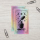 Make a bold first impression with this vibrant business card designed for modern nail technicians and beauty artists. Inspired by celestial tarot style, this design features a detailed black nail polish illustration with stars, moons, and magical accents, layered over a faux holographic pastel unicorn rainbow background. The front is styled like a mystical tarot card, while the back offers space for contact info, a scannable QR code, and social handles—keeping things both stylish and functional. Ideal for professionals who want a dreamy, retro vibe that still feels sharp and professional.