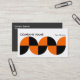 Una plantilla de tarjeta de visita con una composición geométrica atractiva en una atractiva paleta de colores. Detalles de la empresa en la parte delantera con nombre y datos de contacto en la parte posterior en blanco sobre un fondo gris oscuro que contrasta. Se puede adaptar a una variedad de negocios y otros usos. También se puede cambiar para utilizarla más como tarjeta de perfil eliminando o intercambiando los datos de la empresa y de su nombre personal.