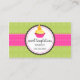 diseños 2012 del miembro de la jet-set del ©. Promueva su negocio de la panadería con las tarjetas de visita lindas y coloridas de la magdalena. Nuestro diseño tiene una magdalena anaranjada de la rebanada dentro de una taza rosada. Su texto del negocio va dentro de un círculo horneado a la crema y con pan rallado caprichoso y acabado apagado con una cinta rosada del lunar.