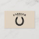 Una simple tarjeta de visita de color beige y negro con un ilustracion de herradura e información de personalizable. Perfecto para actividades tales como el fairero, veterinario, entrenamiento de caballos, cría de caballos, instructor de equitación, etc.