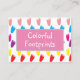Colorida tarjeta de presentación del patrón de huellas del bebé diseñada por Nisha Prabhu. Personalizable completo. Personaliza tus datos. La tarjeta de presentación del patrón de huella de bebé colorida es una manera única y atractiva de hacer una impresión memorable. Esta tarjeta de visita ofrece un divertido patrón de huellas de bebé coloridas, añadiendo un toque de encanto y personalidad a su imagen profesional. Los colores vivos y el diseño bonito hacen que se destaque de las tarjetas de visita tradicionales, lo que lo convierte en un gran comienzo de conversación. Ya sea que sea propietario de una guardería, propietario de una boutique para niños, o simplemente quiera agregar un toque de creatividad a su tarjeta de visita, la tarjeta de presentación del patrón de huellas de bebé coloridas es una elección fantástica.