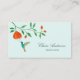 Business card featuring a hand-painted hummingbird and a flowery branch on a pale blue background. The font style, font size and color can be changed by clicking on "Edit this Design".