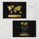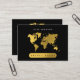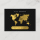 Un hermoso diseño que incorpora un mapa del mundo del oro. El elegante diseño se complementa con un acento dorado y negro. Una forma sencilla y profesional de presentar tu negocio. Iconos de medios sociales incluidos en el diseño de esta tarjeta de visita para uso personal. Personalice sus detalles para crear su propia tarjeta de visita única. Una tarjeta de visita perfecta para empresas relacionadas con agencias de viajes, reservas de entradas, servicios de organización de vacaciones.