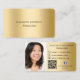 Un falso fondo dorado. Personalice y agregue su foto, nombre, título e información de contacto. Agregue su dirección URL/enlace del sitio web al código Qr. Con iconos de Facebook e Instagram. Texto negro.