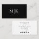 Un hermoso diseño de iniciales en blanco y negro en monograma. Esta elegante tarjeta de visita es ideal para todo tipo de profesiones. Una forma sencilla y profesional de presentar tu negocio. Iconos de medios sociales incluidos en el diseño de esta tarjeta de visita para uso personal. Personalice sus detalles para crear su propia tarjeta de visita única.