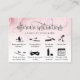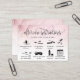 Modernas extensiones de pestañas de tarjeta de postratamiento iconos y acuarela rosa rosa / polvoriento - utilice estas instrucciones de postcuidado con instrucciones ilustradas para sus clientes. En el reverso puedes añadir tu logotipo / opcional y tu información de contacto, así como tus cuentas de redes sociales.