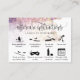 Modernas extensiones de pestañas de tarjeta de postratamiento iconos y acuarela rosa rosa / polvoriento - utilice estas instrucciones de postcuidado con instrucciones ilustradas para sus clientes. En el reverso puedes añadir tu logotipo / opcional y tu información de contacto, así como tus cuentas de redes sociales.