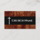 Un diseño rústico marrón de cuero falso con tu nombre de iglesia (delante) y nombre/detalles del pastor (detrás). Tipografía simple en blanco y negro con una cruz.