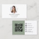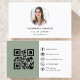 Conéctese con estilo y facilidad utilizando esta Sage Green Modern Photo con la tarjeta de presentación de medios sociales QR Code. Con un fondo verde salado limpio, tu foto profesional y espacio para las principales redes sociales, este diseño elegante incluye un escaneado código QR que enlaza directamente a tu sitio web, portafolio o página de reserva. Perfecto para emprendedores, profesionales de la belleza, entrenadores o creadores de contenidos, esta tarjeta de personalizable combina el minimalismo con la marca moderna.