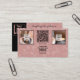 Personalizado Imagen Pink Hair Salon QR Código Tarjeta Social de Negocios para realzar la imagen profesional de su salón. Diseñada en un elegante formato paisajístico, esta tarjeta combina estilo con funcionalidad para dejar una impresión duradera en sus clientes. La parte frontal de la tarjeta contiene dos descripciones de servicio en imágenes cuadradas, con un código QR estratégicamente colocado entre ellas. Una llamada a la acción convincente invita a los destinatarios a "Buscar por fecha" para tener un acceso fácil a la programación. Además, se anima a los clientes a "Conectarse con su salón de pelo!" en plataformas sociales populares como Facebook, TikTok, Pinterest e Instagram, seguidas de la cuenta social de su salón y la etiqueta #ShopLocal. En la parte de atrás, un campo negro sirve como telón de fondo para el logo de tu salón, creando un sorprendente contraste visual. El resto del espacio rosado está reservado para información de contacto esencial como tagline, nombre del salón, número de teléfono, dirección y URL del sitio web, todo presentado con una elegante letra negra. Diseñado como una plantilla de personalizable, toda la información se adapta a su salón. Si es necesario, todos los elementos de la tarjeta se pueden editar utilizando las herramientas de diseño, lo que le permite ajustar los colores. Esto le permite satisfacer las necesidades de marca de su salón. Para obtener más información sobre la creación de marca y las solicitudes de diseño personalizado, visite www.KBMD3signs.com o póngase en contacto con nosotros en info@KBMD3signs.com.