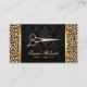Tarjetas de visita Hair Stylist Gold Scissor Leopard Print Damask.