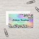 Funky tarjetas de visita coloridas con un fondo multicolor de papel de leopardo, un centro lúdico arcoiris con bordes purpurinas dorados, tu nombre, título, detalles de contacto e íconos de medios sociales. Los iconos se pueden eliminar haciendo clic en personalizar y luego puntee en el personalizar.