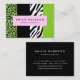 Elegantes, elegantes y sofisticadas tarjetas de visita con motivos de leopardo y cebra de color verde. Diseño moderno y de moda, perfecto para los amantes de la impresión animal.