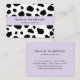 Elegantes, elegantes y sofisticadas tarjetas de visita con un patrón de vaca en color blanco y negro. Diseño moderno y de moda, perfecto para los amantes de la impresión animal.