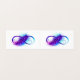 Infinity symbol with a beautiful feather painted in purple and blue bright colors on white background.