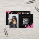 Una hermosa tarjeta de visita de diseño negro y rosa que incluye tu foto completa y tus propias fotos de la cuadrícula, así como tu nombre, título, código QR y manejo de medios sociales. La foto de portada se ve atomicamente repartida con una capa opaca negra para la visibilidad del texto. Perfecto para los influyentes de medios sociales. ¡Simplemente personalizar y hazlo tú mismo!