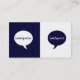 Tarjeta de visita inglesa- del intérprete con las burbujas y las palabras "intérprete" y "intérprete" de la charla en el frente de la tarjeta y su nombre, título e información de contacto sobre la parte posterior. Nombre de y su del "intérprete" de e del "intrepreter" de los palabras de los las de la estafa del lado de la O.N.U de con burbuja de habla en de los intérpretes de Tarjeta de presentación para, dorso del al de y información de contacto del título.