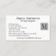 Tarjeta de visita con la letra anticuaria M en una fuente del woodblock del viejo estilo.