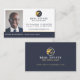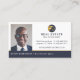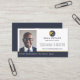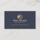 Diseño moderno y profesional de tarjetas de visita inmobiliaria con un marcador de foto incorporado en el diseño para mostrar su propio retrato fotográfico. Diseño limpio y minimalista con un elegante logotipo de la marina y de la casa inmobiliario dorada que puede personalizar con su nombre comercial o eliminar y reemplazar con su propio logotipo. El nombre y el título se muestran de forma prominente en la parte inferior dentro de una banda azul marino. En el diseño se incorporan sutiles acentos de oro falso para añadir un elegante aspecto profesional. Personalice su información de contacto. En el reverso aparece el logotipo de la empresa y la información de contacto adicional, como la dirección del sitio web. Puede cambiar el color de fondo, el tipo de letra, el color de la fuente y el diseño para que se adapte a sus preferencias personales. El diseño de los logotipos contenidos en este diseño son obras de arte originales por moodthlogía.