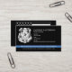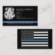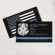 Este diseño presenta un tema de la bandera de la policía con una delgada franja azul. Personalizar con el nombre, cargo e información de contacto del agente del orden, el comisario, el capitán, el jefe o cualquier empleado que trabaje en el departamento de policía.