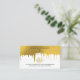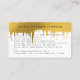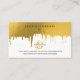 Un diseño de goteo metálico de oro falso a la moda con monograma de escritura con problemas de moda. Un estilo moderno con un toque de gracia. Una tarjeta de visita ideal y las instrucciones de poscuidado para esteticistas, terapeutas de belleza, etc.