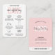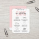 Tarjeta de Instrucciones para el boda y el cuidado de pasteles de eventos con un tipo de letra de escritura moderno en un diseño rosa rubor. Esta guía femenina para el cuidado de las tartas rosa y blanca incluye los consejos más importantes para el cuidado de las tartas con íconos, para que sus clientes sepan cómo almacenar, transportar y servir su pastel. La perfecta carta de negocios con tienda de pasteles para añadir a las cajas de pasteles.