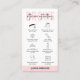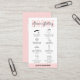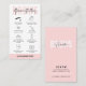 Asegúrese de que sus clientes sepan cómo cuidar sus cejas después de un tratamiento con una tarjeta de negocios personalizada de poscuidado de las cejas. Esta tarjeta de instrucciones de laminación y microblading de la frente femenina incluye iconos de cuidado para cada paso y un tipo de letra de escritura moderno. Esta tarjeta de guía de cuidado de bar de belleza blanda y rosa es la adición perfecta a su diseño de papelería de peluquería.