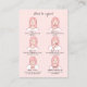 Instrucciones modernas y profesionales tarjeta de visita para un negocio de belleza (por ejemplo, extensiones de pestañas, modelado de cejas o microblado, etc.), con un simple fondo rosa pálido con imágenes de una mujer con diversas expresiones faciales y gestos (mírame si necesitas una expresión diferente), y texto completamente de personalizable por un lado, y su nombre comercial con instrucciones de personalizado y espacio para escribir en la próxima cita del cliente. otros. Si necesitas ayuda para personalizar esto, por favor envíame un mensaje usando el botón de abajo y estaré encantado de ayudarte.