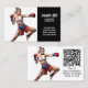 Arte original de ©Gifts_AtTheCorner2024 ©mjm2024 Esta única y llamativa tarjeta de visita incluye a una boxeadora en acción, representando perfectamente la profesión de instructor de kickboxing. La imagen dinámica captura la esencia de la fuerza, el poder y la determinación, convirtiéndola en una elección perfecta para cualquiera en la industria del fitness o las artes marciales. La inclusión de un código QR en la tarjeta de visita añade un toque moderno y tecnológico, lo que permite a los clientes potenciales acceder fácilmente a más información sobre los servicios del instructor de kickboxing, horarios de clase o detalles de contacto con un simple escaneo mediante su smartphone.