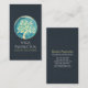 Plantilla de tarjeta de visita del instructor de meditación de yoga - Elegante color de agua Verde azulada y árbol de Relieve metalizado dorado falso sobre fondo de papel azul de la marina.