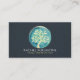 Plantilla de tarjeta de visita del instructor de meditación de yoga - Elegante color de agua Verde azulada y árbol de Relieve metalizado dorado falso sobre fondo de papel azul de la marina.