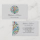 Esta moderna y única tarjeta de visita para instructores de yoga está decorada con un colorido árbol de mosaico de diseño de vida y una tipografía de escritura elegante en un fondo gris. Personalizable fácil. Utilice la opción Editar para cambiar el tamaño, estilo o color del texto. Original Mosaico © Michele Davies.