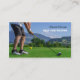 Foto de un hombre alrededor a juntar con te apagado en un campo de golf. Plantilla de la tarjeta de visita para los negocios relacionados del golf.