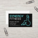 Esbozo de una mujer trabajando con un fisiopóbol de un color azul brillante con un fondo negro sólido. El texto tiene un color que se corresponde con el de una fuente moderna y nítida. Magnífica tarjeta de negocios de alta energía para un Yoga, Physioball, Aerobic, Pilates, Entrenador Personal o cualquier persona en la industria del fitness.