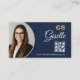 Tarjeta De Visita Insurance Agent Navy Blue Gold Photo QR Code Linen