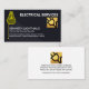 El diseño incluye un interruptor de bombilla amarilla con un haz de luz que resalta tu prestigioso nombre, el título del trabajo y una lista de posibles servicios que puedes ofrecer. Cambie esta lista para adaptarla a sus propias necesidades de servicio. Hacia la parte superior se encuentra el nombre comercial y el logotipo de un enchufe de potencia dorada que se puede utilizar.