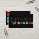 Tarjeta de visita intrépida del salón de pelo - diseñada por Colourful Designs Inc. Copyright 2012. El texto, las fuentes y los colores pueden ser modificados. Apenas haga clic el "personalizar él" para realizar todos sus cambios.