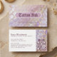 Make a bold and unforgettable impression with this striking tattoo business card design featuring a purple iridescent holographic snake scale pattern for a modern, edgy, and high-impact look. The front showcases a mesmerizing reflective snake skin design, framed by an ornate decorative plaque displaying your business name in a dramatic gothic medieval font, alongside your website for a strong branded presence. The reverse side continues the holographic snake scale aesthetic, paired with a clean and professional layout for your contact information and a QR code for easy booking, portfolio access, and social media connection. Perfect for tattoo artists, tattoo studios, blackwork artists, fine line tattooists, realism artists, gothic tattoo specialists, custom ink designers, apprentice tattoo artists, and professional tattoo businesses looking for a unique, alternative, and visually powerful branding card that stands out.