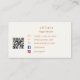 Back: name, title, qr code to your website, contact information and Facebook and Instagram icons.