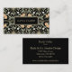 ¿Busca tarjetas de presentación que destilen elegancia? La Tarjeta de Presentación Jazmín Botánico presenta un patrón elegante como fondo, con el nombre de la empresa en primer plano. La parte trasera de la tarjeta detalla la información del titular en texto color beige sobre fondo negro.
